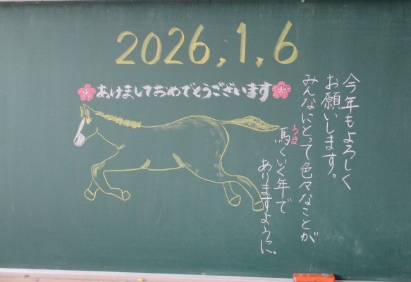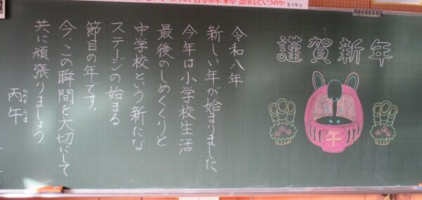 新年初日には、書き初めを披露したり、冬休みの思い出を紹介したりして
